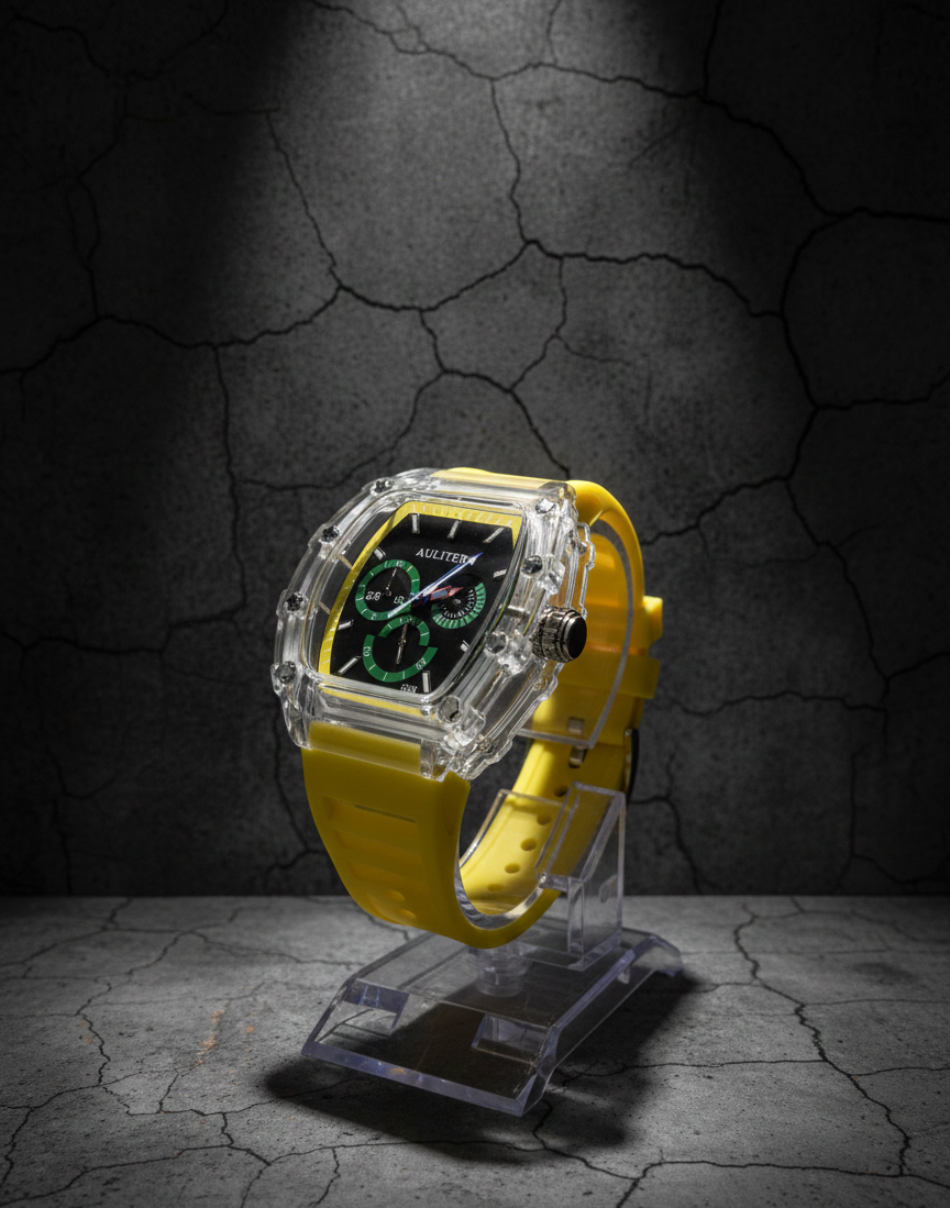 Crystal Chrono Sport Watch – Transparent Case | Multi-Color Edition (6 Premium Strap Colors)