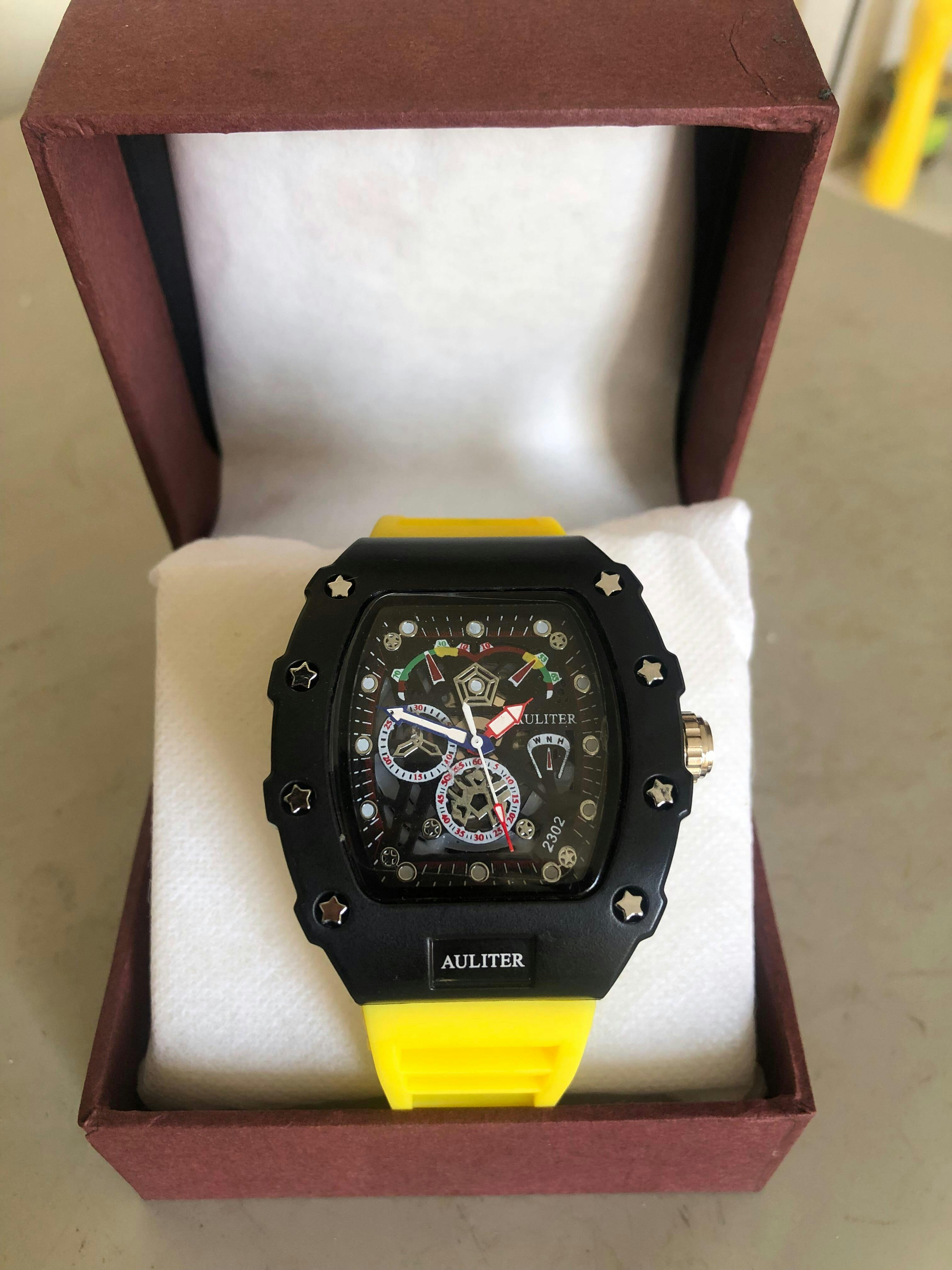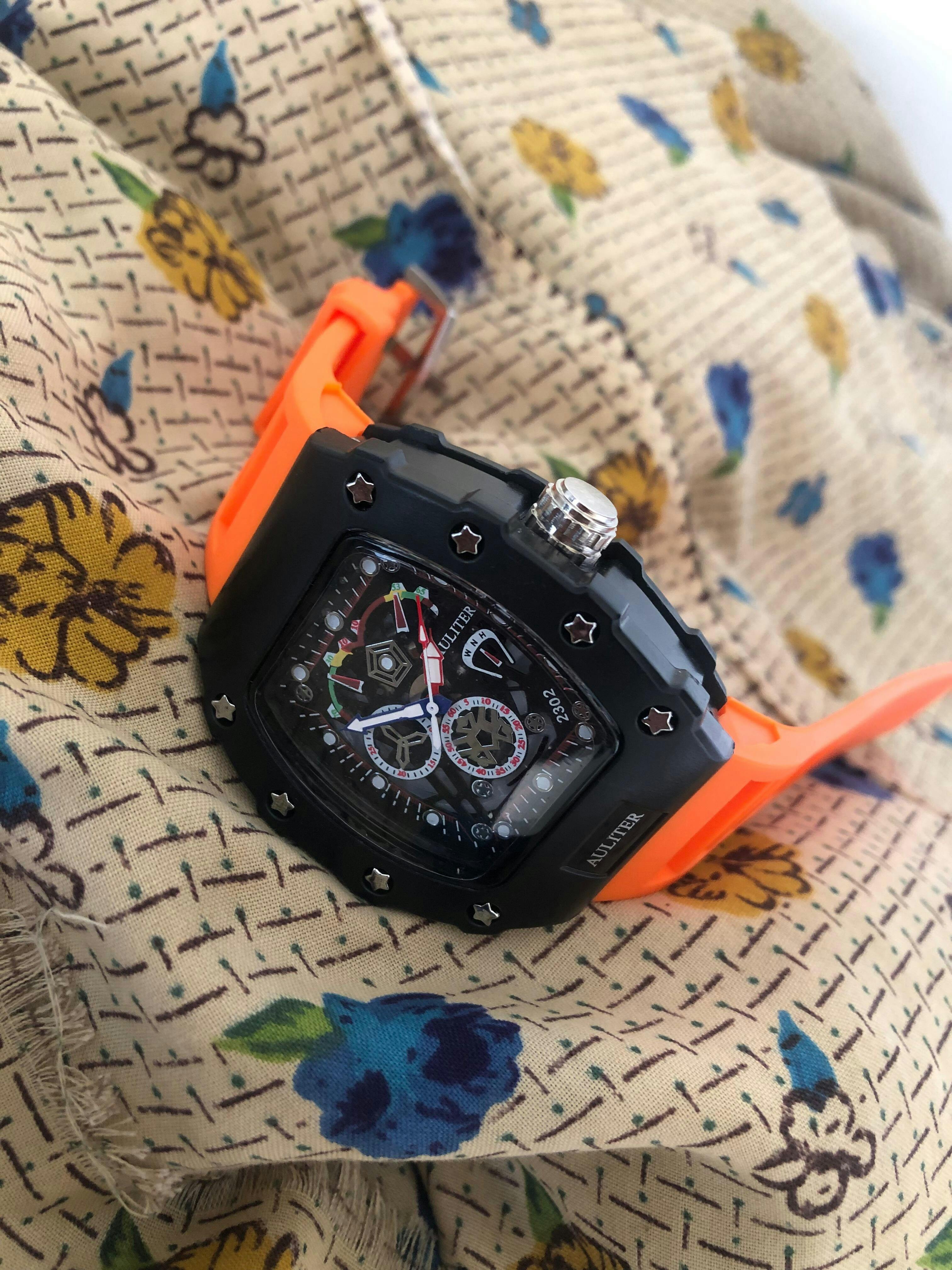 Choose your vibe from 7 stunning strap colors — Blue, Grey, Yellow, Dark Green, Orange, Black, and Sky Blue — and redefine your everyday look. Whether you're hitting the gym, the track, or a night out, this watch stands out everywhere you go.